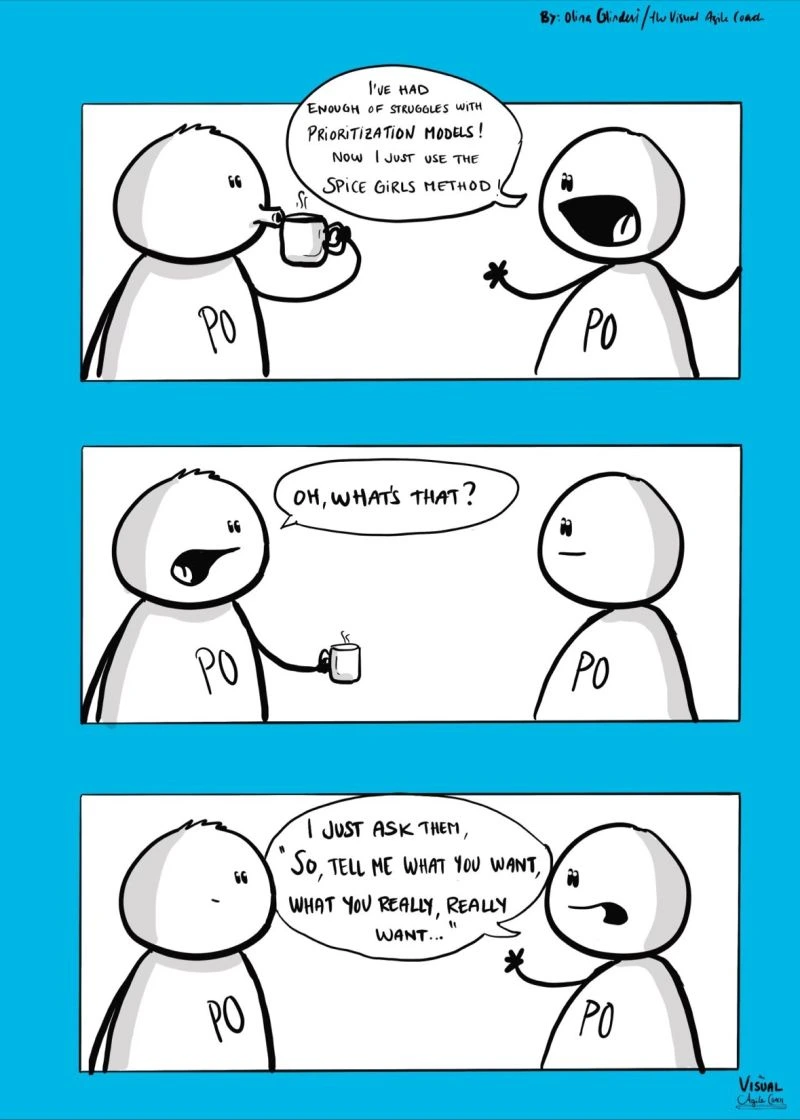 • Ya que lo enriquecedor son las conversaciones, como menciono en el punto anterior, es un requisito imprescindible (ahora sí que es un elemento “MUST”, si habláramos de la técnica MoSCoW), es que estos espacios donde se realiza la priorización sean cocreados, que todas las voces sean escuchadas y haya la diversidad mínima necesaria, es decir, que haya personas de todas las áreas involucradas (especialistas tanto de negocio como del área técnica).
