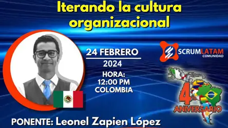 Webinar que tuve el gusto de facilitar para Scrum Latam Comunidad, con motivo de su 4to aniversario. El tema de la charla: Iterando la Cultura Organizacional.
